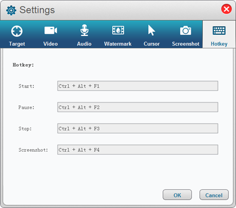 Die Standard-Hotkey wird wie folgt angezeigt, und Sie können die Hotkey entsprechend Ihren Bedürfnissen ändern.
